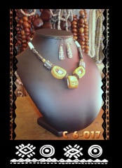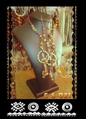 Collier C6-019Prix: 35,00 € Collier mystique avec des pendants!!! Ses os de chameau teintés en "Bogolan" sont de tailles et formes diverses ajuster de façon harmonieuse auxquels les "Koffyn" rouges donnent une dimension... Suite... |