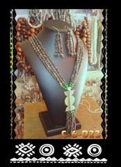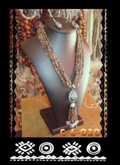 |  Collier C6-018Prix: 30,00 € Identique au précedent, il s'agit d'os de boeuf teinté au "hénné" local. Vendu avec sa paire de boucles d'oreille Longueur: 22 cm... Suite... |