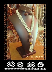 |  Collier C6-020Prix: 35,00 € Long pendentif de graines de café sauvages utilisant des perles de terres cuites noires sur les extrémités du collier et une grosse perle de terre cuite noire toujours en son centre symbolisant... Suite... |