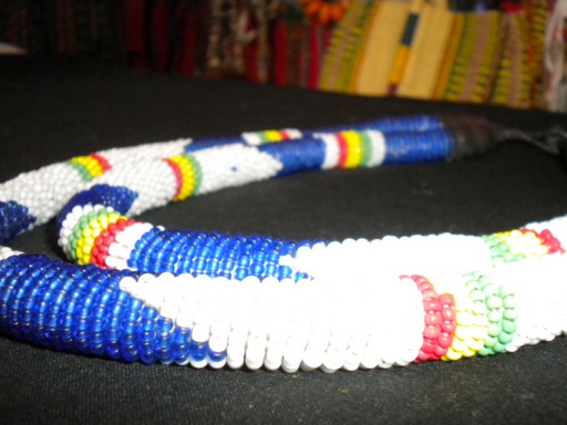 Magnifique collier" Kambairi" deux tours du Mali au couleur de l'Afrique du sud ,mélange de perles simples bleues, blanches,vertes..
